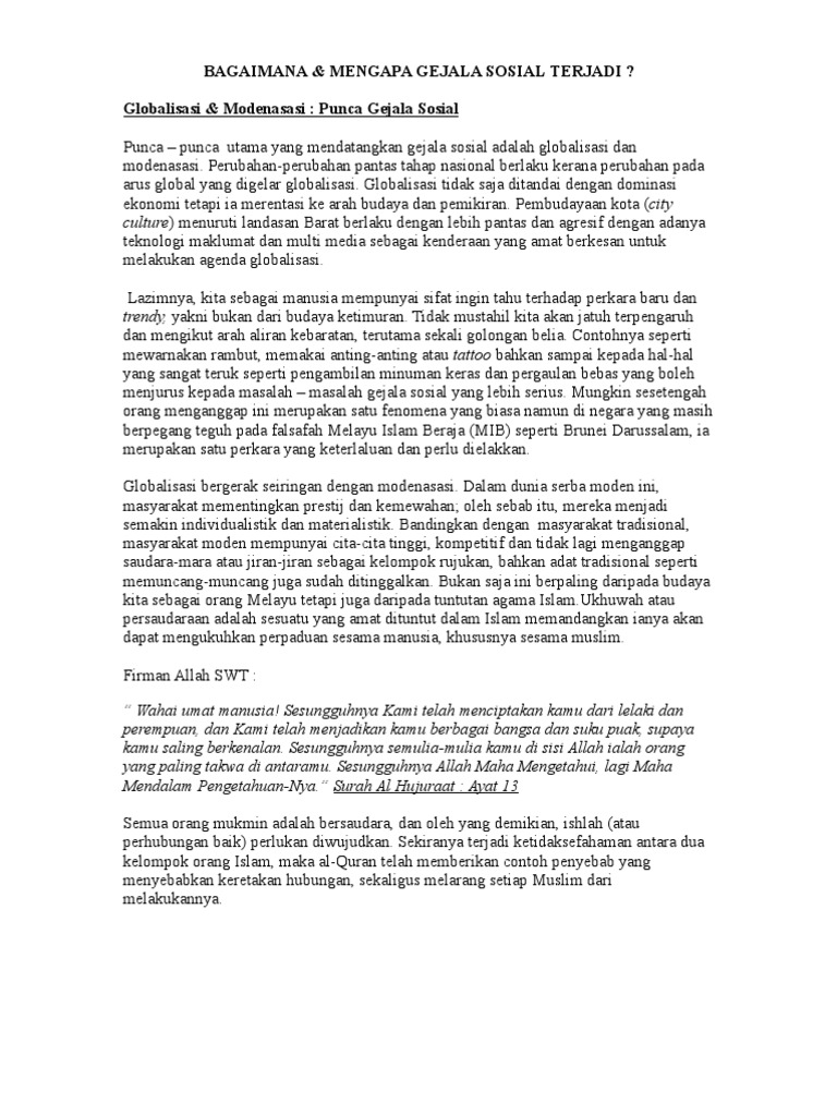 Punca-punca Gejala sosial from imgv2-1-f.scribdassets.com Pertengkaran ataupun perbalahan antara ibu bapa yang berlarutan memberi impak yang besar terhadap anaknya tanpa mereka sedari. Punca dan penyelesaian siri islam dan masyarakat: Gejala sosial dalam masyarakat islam: Keluarga merupakan platform penting dalam membentuk peribadi seseorang individu terutama remaja yang baru. Karangan punca punca gejala sosial dalam kalangan remaja remaja merujuk golongan yang berumur belasan tahun dan belum bekerja atau masih bersekolah. Pdf anime dan gejala sosial dalam kalangan remaja di selangor. Punca gejala sosial bagaimanapun bermula daripada remaja itu sendiri. Punca punca gejala sosial karangan.